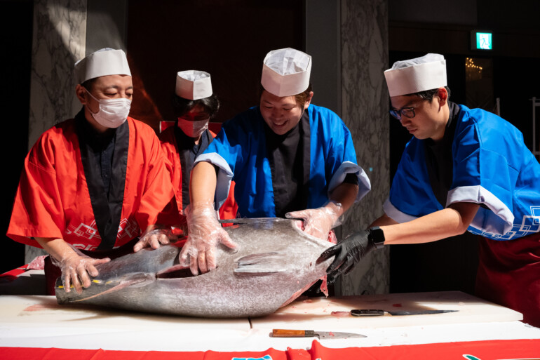 出張寿司職人やマグロ解体ショーなどライブキッチン、会場でのアルコール含めたドリンク対応、コミコミ見積もりなどもお喜びいただいています。