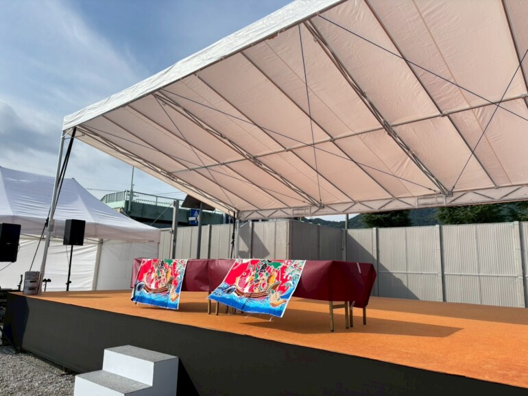 開放感あふれる屋外会場、そして立派な屋根付きの特設ステージ。