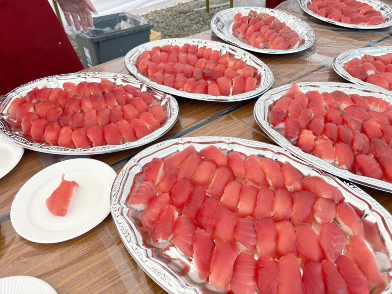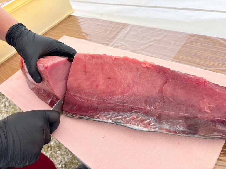 屋外特設ステージでの「マグロ解体ショー」の様子をレポートいたします。