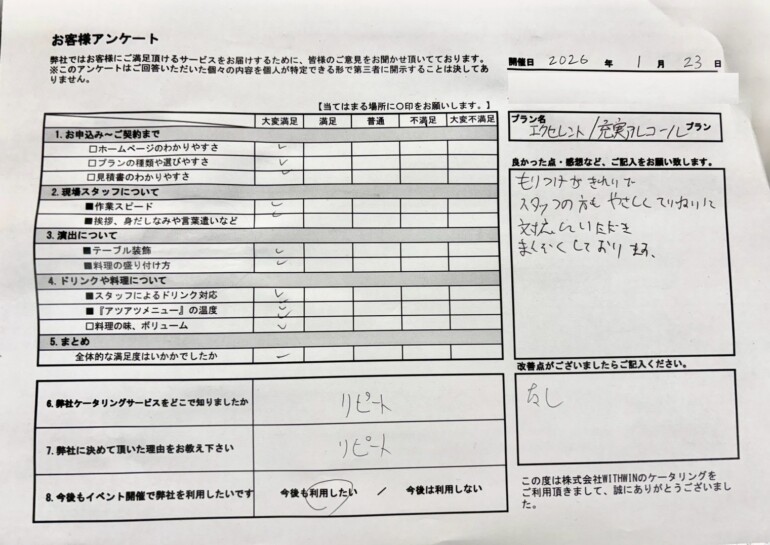 この度は、数あるケータリングサービスの中から