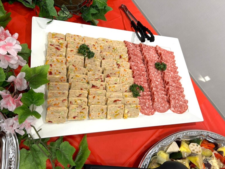 大規模な法人パーティーでは、お料理の「取りやすさ」と「視覚的な期待感」の両立が不可欠です。